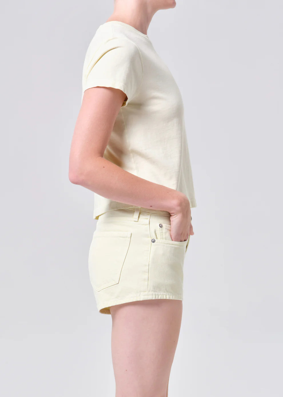 An easy, everyday essential in the prettiest pale butter yellow. Soft, breathable, and endlessly versatile—it’s the kind of tee you’ll reach for on repeat.
