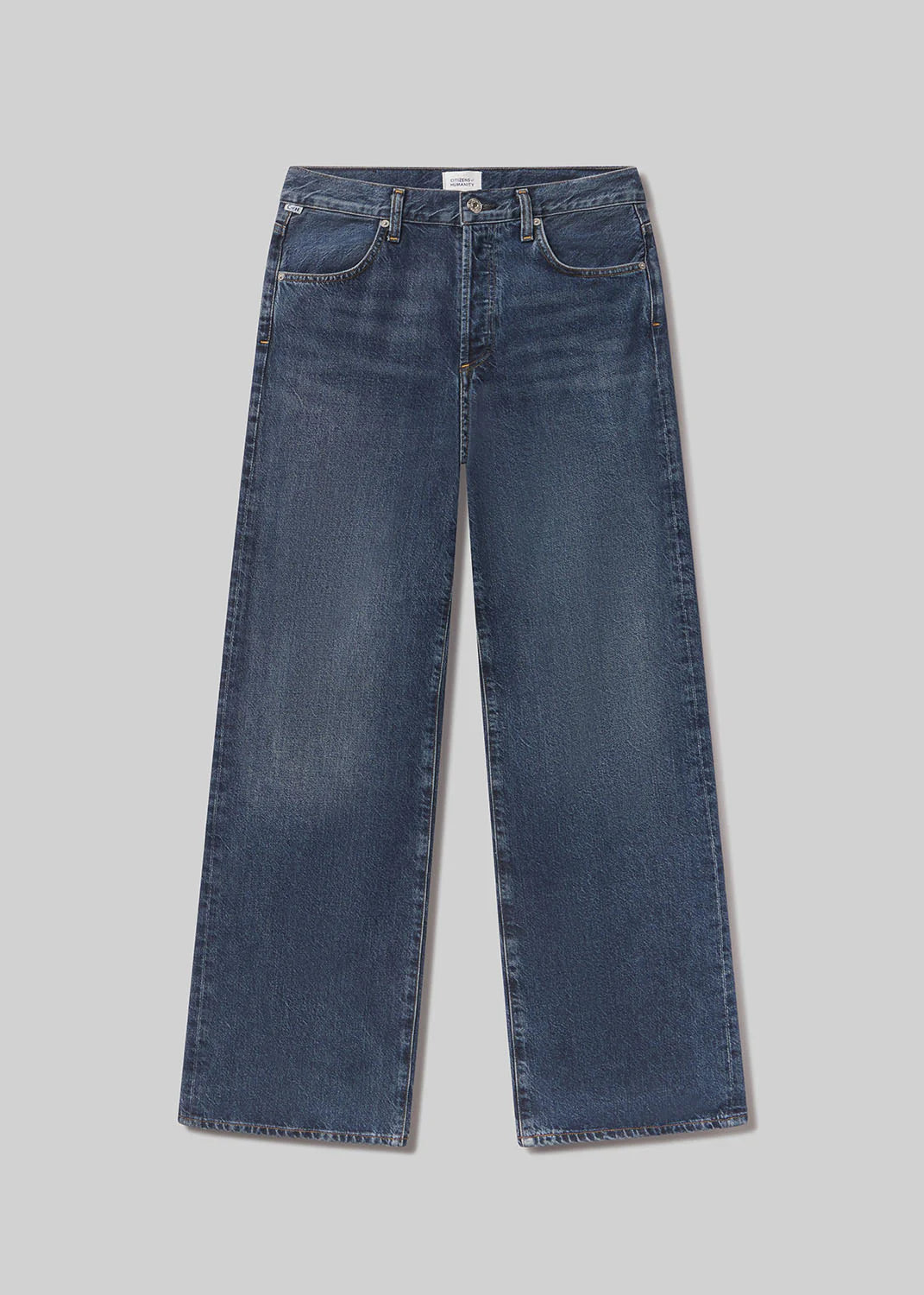 The ‘Annina’ jean is designed with a high rise and full-length straight leg for a flattering, elongated silhouette. The ‘Westwood’ wash is a deep indigo with soft fading and whiskering, crafted from rigid denim made with recycled cotton for a subtly broken-in feel. Style with a crisp button-down or relaxed knit.