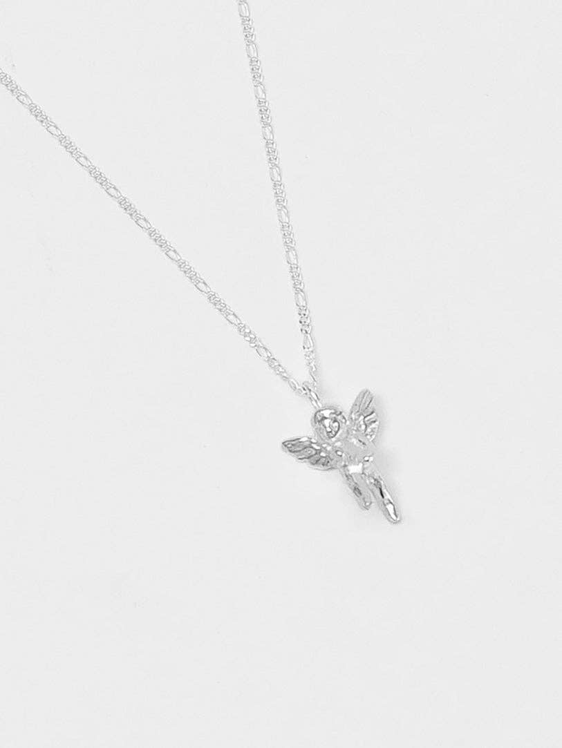* Cherub charm necklace * Pendant made with Recycled 925 Sterling Silver * 925 Sterling Silver figaro chain * Chain measures 18" long