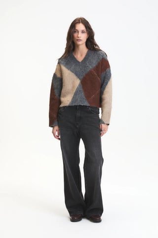 Rails Rayleen Sweater in Brown Ivory Blanket Stitch