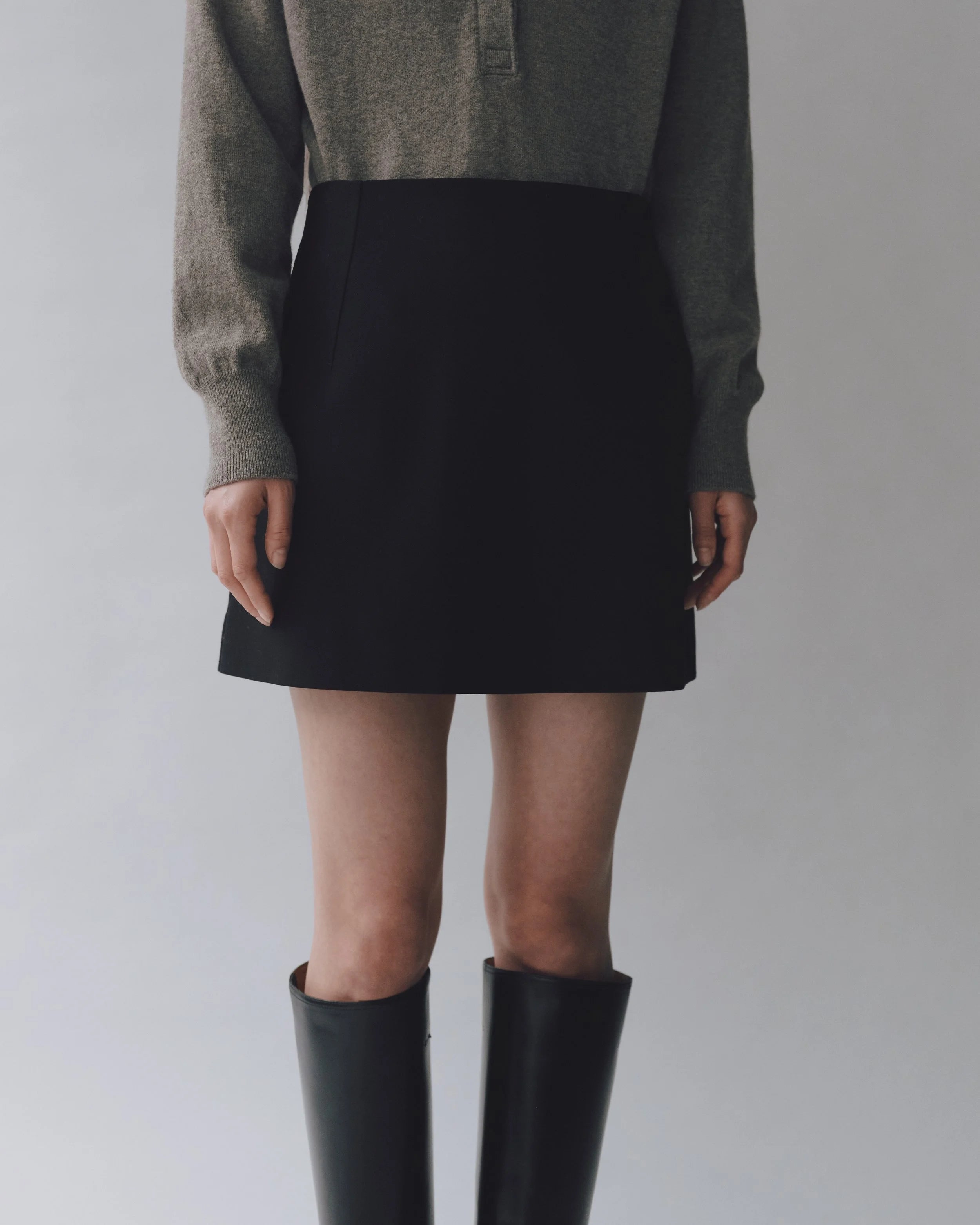 A beautiful a-line silhouette mini skirt, made of a wool-blend for a mid-weight feel.