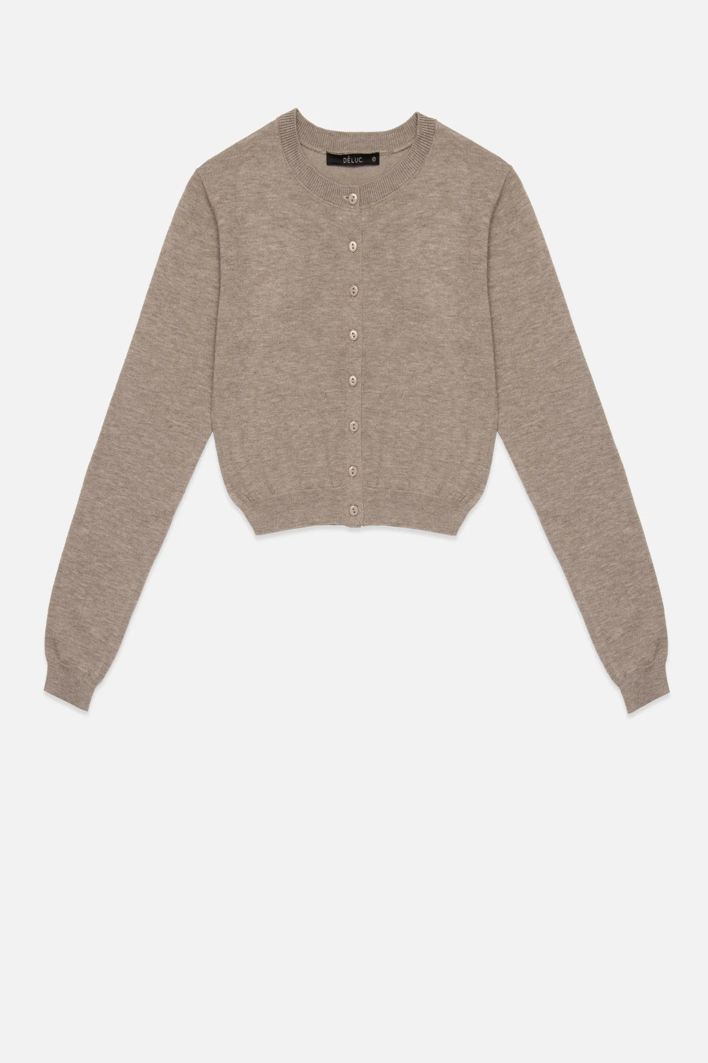 Viscose blend cardigan with round neck and long sleeves. Front button closure. Cropped fit.
