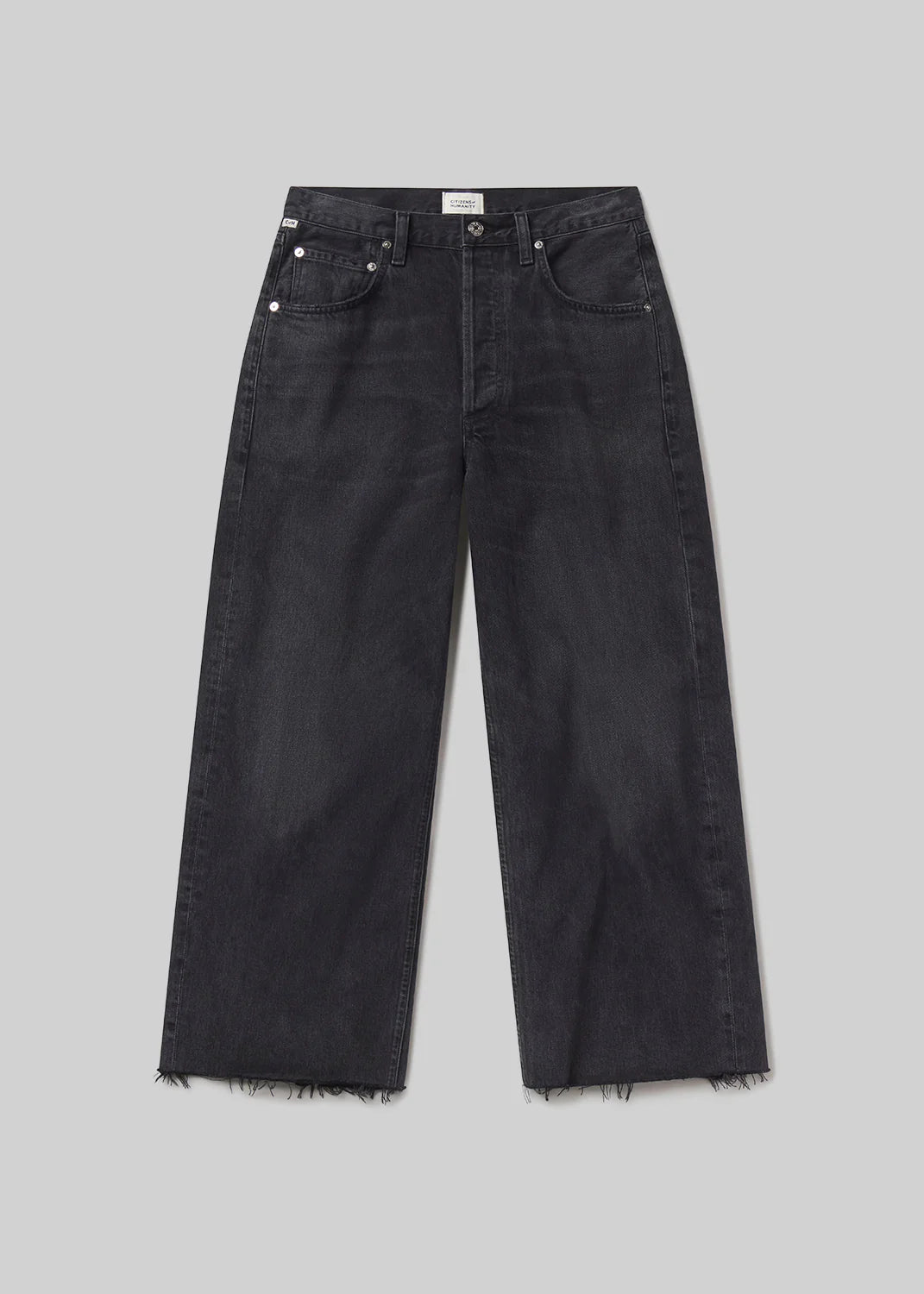 The ‘Ayla’ offers a refined take on the baggy silhouette with a relaxed fit that sits away from the body while maintaining a clean, intentional shape. The ‘Bronson’ wash is a washed-out black with soft fading and a raw hem, lending a subtle edge to the cropped length. Crafted from rigid regenerative cotton with a soft hand, it styles effortlessly with everything from crisp shirting to slim knits.