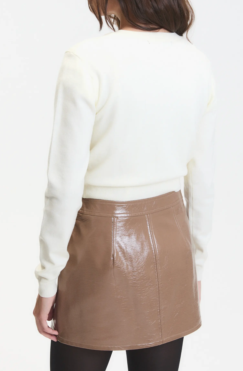 This cropped cardigan captures timeless femininity with a modern twist. Crafted from a soft, fine-knit fabric, it features a fitted silhouette that flatters while offering endless layering potential. The clean crew neckline and tonal button front give it a polished, minimalist feel — equally at home with tailored trousers as it is with denim or a mini skirt.