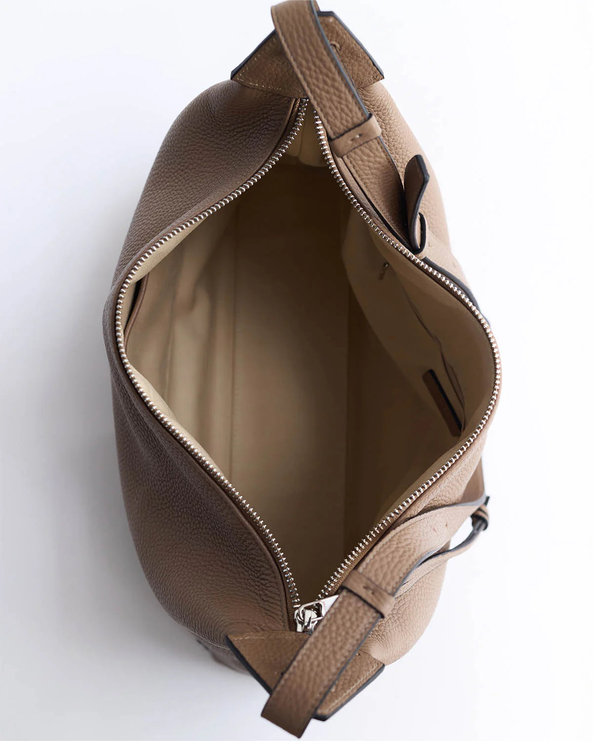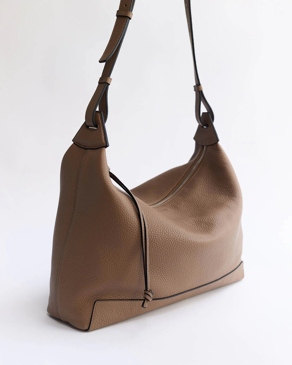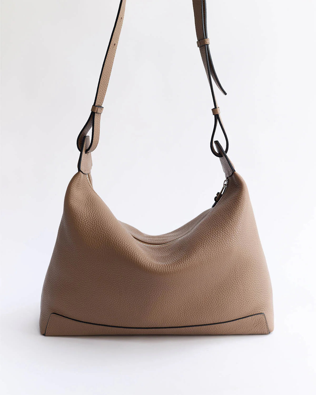 Shaped to sit comfortably against the body for effortless wear, the Lou bag is cut from soft grained leather and sized to fit all the mid sized daily essentials. Finished with an internal slip and zip pocket and one zipper closure. Subtly embossed with logo to keep her understated. The adjustable strap will slip comfortably on your shoulder or worn cross body for seamless wear.